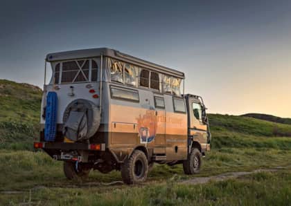 This Mitsubishi Fuso comes equipped with a garage to keep your motorcycle. Check out the Fuso’s journey at The Continuing Adventures of Robinson Fuso.