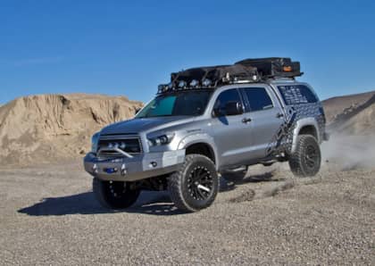 The builds most recent shift was to a larger set of 315/70R17 Nitto Trail Grapplers. Unhappy with his previous tire’s performance in the dirt, he was looking for a set that would clear out easily on the trail and still retain excellent highway manners. Mounted on 17-inch Toyota FJ Cruiser steel wheels, which he powder-coated white, Childs states he’s been extremely happy with the Trail Grapplers' performance on-road and off.