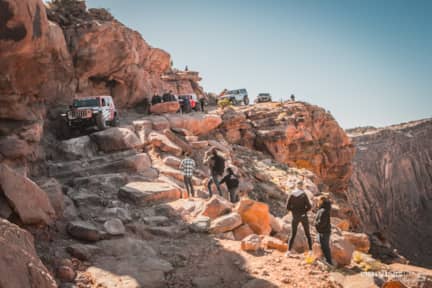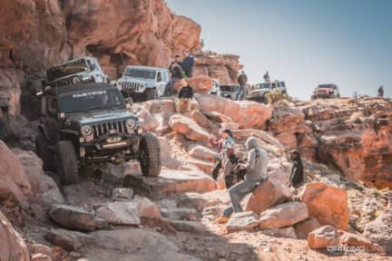 Ranging from scenic and easy to technical and dangerous, the trails around Moab can accommodate off-roaders of any skill level and rigs of all capabilities. Whether you’ve got a bone stock Wrangler or an Ultra4 race car, there’s something for everyone. Trail runs are led by experienced wheelers who are there to guide you through the trails and spot you through obstacles. The iconic red rocks of Moab are the perfect backdrop for a sunny day’s trail ride, and there’s always a great view to break for lunch.